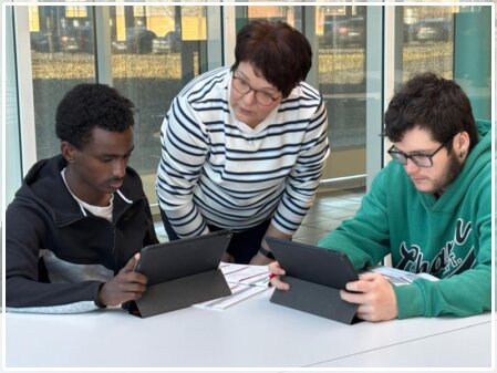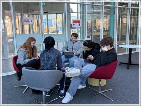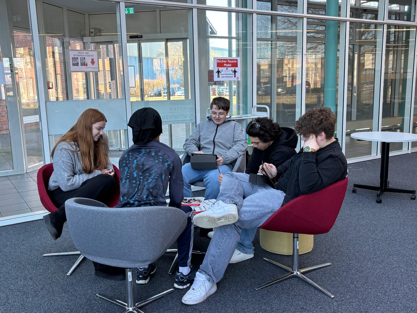 Im Anschluss hatten die Jugendlichen die Gelegenheit, eigenständig zu recherchieren. Der Besuch im Berufsinformationszentrum war für alle Beteiligten eine wertvolle Erfahrung. Die Schülerinnen und Schüler erhielten wichtige Impulse für ihre berufliche Zukunft und konnten sich intensiver mit ihren eigenen Interessen und Fähigkeiten auseinandersetzen. Insgesamt war der Ausflug nach Rheine ein gelungener und praxisnaher Beitrag zur Berufsorientierung im Rahmen der Berufskundlichen Woche 2026.