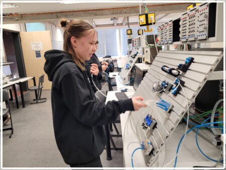 Im Pneumatik-Labor zischte und pfiff es, weil die Teilnehmenden eine Förderanlage mit Druckluft entwickelten. In den Informatikräumen programmierten die Schülerinnen und Schüler einen elektronischen Würfel, im Elektrolabor erzeugten sie optische Lichteffekte, in der Kfz-Werkstatt zerlegten sie Verbrennungsmotoren und bauten zukunftssichere Elektromotoren zusammen.