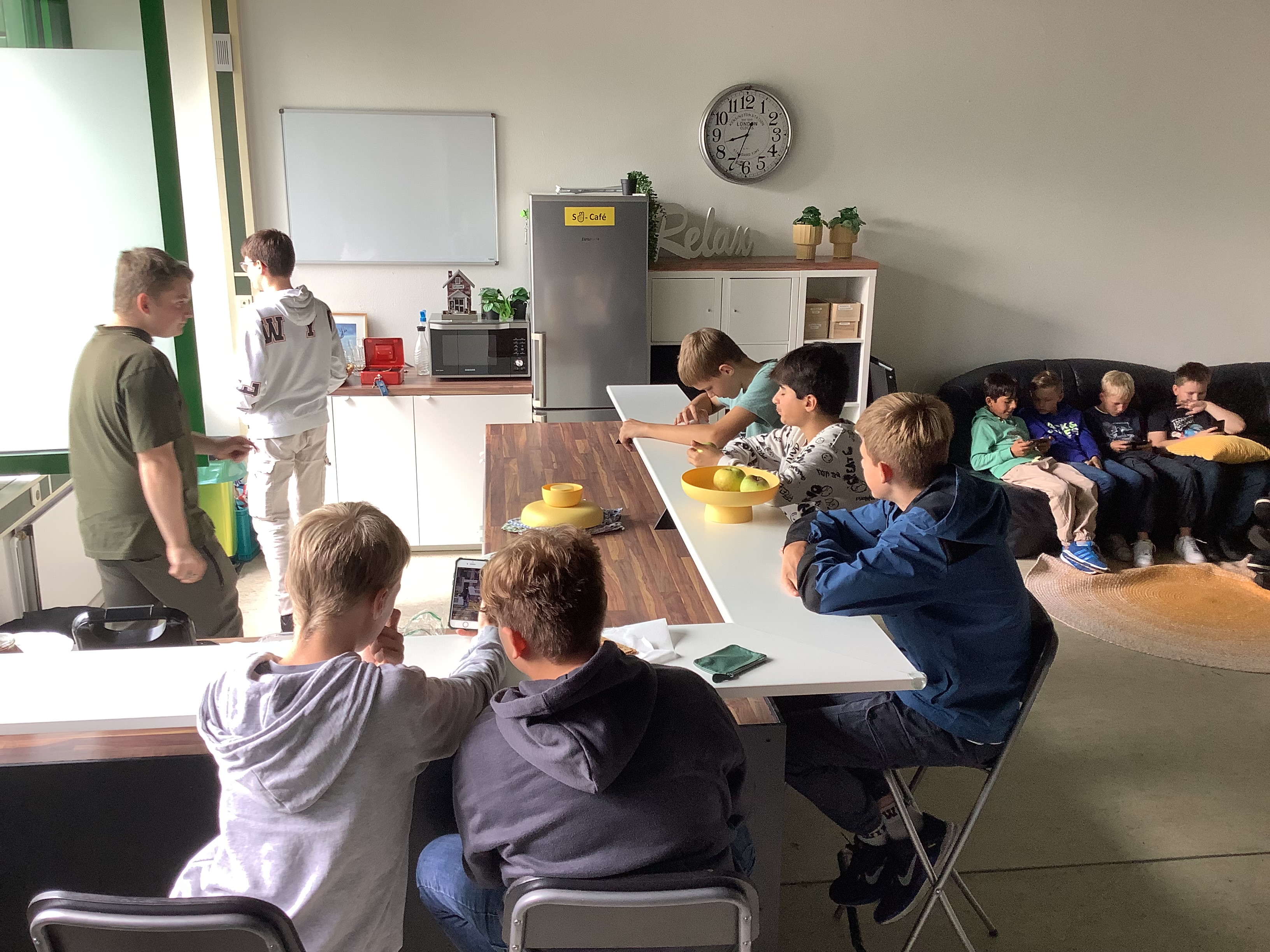 Hell, freundlich und einladend gestaltet, bietet er den Schülerinnen und Schülern einen idealen Ort zum kreativen Austausch und gemeinsamen Entspannen.