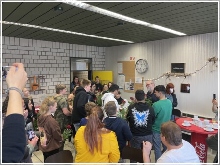 Die Schülerinnen und Schüler, vertreten durch alle Klassensprecher und Klassensprecherinnen mit Ihren Vertretern, ließen es sich zusammen mit der Schülervertretung nicht nehmen, persönlich mit Blumen, netten Gedichten und guten Wünschen Danke zu sagen.